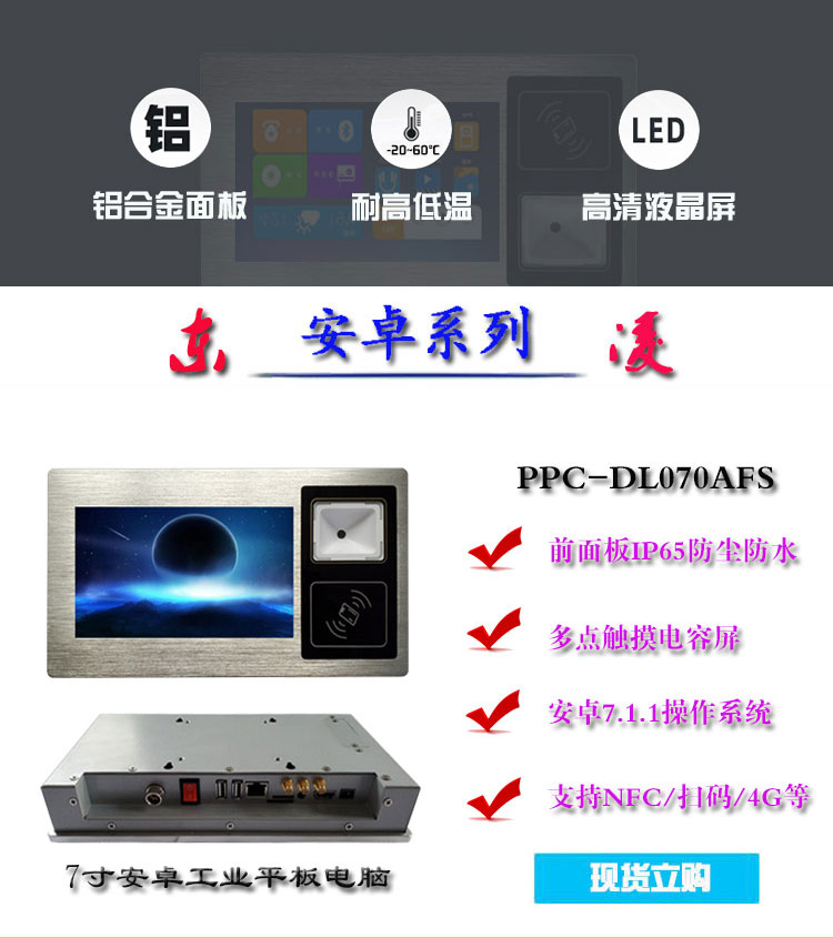 東凌工控二維碼掃碼器安卓7寸NFC刷卡一體機