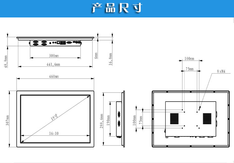 19寸工業(yè)平板電腦,前面板采用鋁美合金材質(zhì),具有良好的散熱效果,機身設(shè)計美觀。