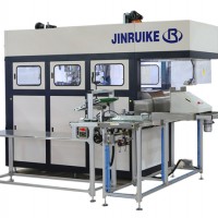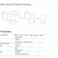2. 紙板自動進料,連貫作業進紙.包邊.折耳及折入成型一次性完成。