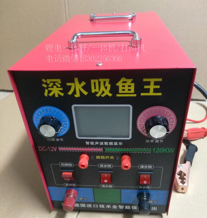 廣州浮魚王電器廠是捕漁機,電漁器,捕漁機的優質生產制造廠家,竭誠為您提供捕漁機*的捕江湖捕漁機,深水打漁機,背用電漁器,大型捕漁機設備深水捕漁器工具,美帝電器供應大功率捕漁器大功率船用機頭等系列產品現在的,捕漁器五花八門各式各樣的都有,柴油發電機組捕漁器,這些捕漁器在上世紀末可是風靡一時,尤其是在長江流域,至今很多地方還都在使用這種機器!但是這些都是老式的機器,技術含量低,廢油費電,價格不菲,體積大重量沉而且對人非常危險!那么如今在中國普及的是脈沖電子捕漁機(很多商家都給他冠上超聲波的名字)這種機器也可以勉強叫它超聲波捕漁器,因為其工作原理很多地方還是利用了超聲波的原理,在目前是很普及,其優點是捕漁器功能強大,省電,重量輕,體積小,便于攜帶,捕漁效果好,價格便宜,對人安全,*適合普通老百姓娛樂使用或漁民專業捕漁器捕漁使用!捕漁機使用方法介紹:1.制作一雙網桿:做兩個直徑為200毫米左右的金屬圓環(*好用鋼管,銅條)套上漁網作為漁網電極,兩漁網電極分別接上一根絕緣導線,再分別固定在兩根2米左右的竹竿上。2.將12V電瓶的正負極接在捕漁機的電瓶夾上,然后將電網兩根絕緣導線的另一端,分別接在捕漁器的輸出接線柱上紅色輸出接正極,黑色輸出接負極這法有點講究,正極輸出是機撈魚的網那邊,負極就接探針那邊。3,聲波捕漁器上的高低壓開關由水深淺決定,深水用高壓,淺水用低壓,可節省電能。4,捕漁機上的頻率調節,是捕漁的關鍵,正確使用將電位器調在適當位置,使繼電器發出清脆的聲音而不發沉,捕漁效果佳!5,手持竹竿,將兩電棒置于水中。兩竿相距1至5米(距離根據機器功率大小而定,背負機器一般相距1-2米,船載機一般相距3-5米),繼續按動開關,即可電暈魚。斷開開關即可撈魚!本機可以打到深度10米寬度7米價格2880元