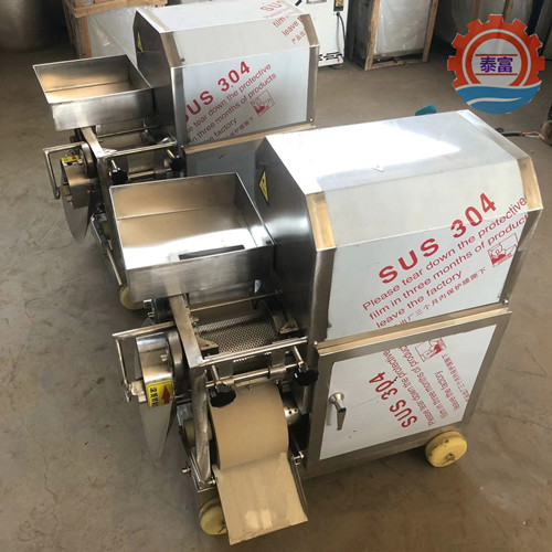 魚肉采肉機又叫去魚刺機,魚肉提取機,魚肉魚刺分離機,去魚刺魚皮魚鱗機等,經過采肉帶與采肉滾筒之間擠壓而能有效的去除細小的魚刺,以及也能將魚皮魚鱗刮出。是制作魚糜制品必備的一款設備。很多人用這款機器制作魚圓,魚絲或者魚糕魚松魚餅等。整機外殼采用優質不銹鋼304制造。產量高大400公斤/小時。非常適合大型工廠加工使用。整機高大豪華,不生銹。(食品加工機械廠家Tel:138*5448-1138)