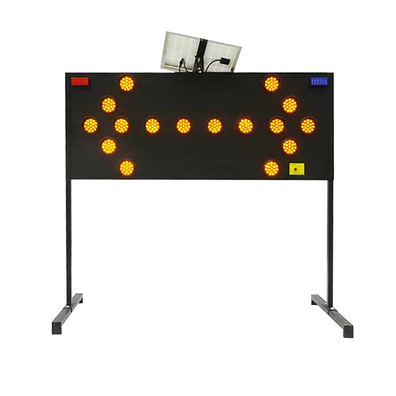 太陽能箭頭燈由LED燈、燈箱、太陽能板、等材料制作而成。太陽能箭頭燈誘導標志又叫做交通導向牌,太陽能誘導標志牌,太陽能施工導向牌,交通誘導牌,導向牌。交通標牌。太陽能導向燈標志使用壽命長,節能環保。