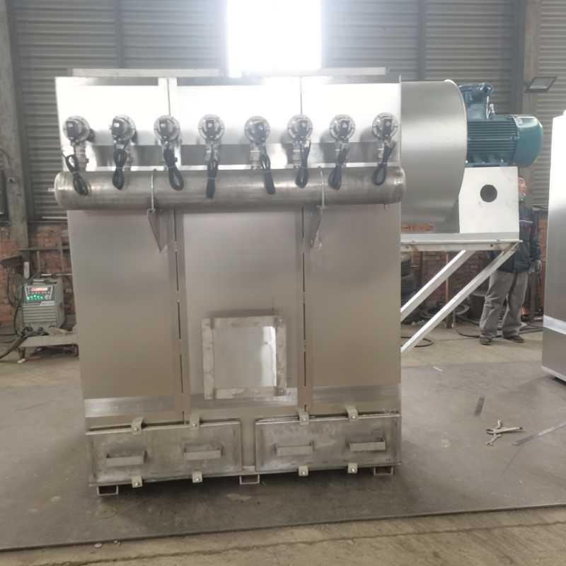 控制儀對排氣閥、脈沖閥及卸灰閥等進行全自動控制。布袋除塵器結構組成由 :除塵器出灰斗、進排風道、過濾室(中、下箱體)、清潔室、濾袋及(袋籠骨)、手動進風閥,氣動蝶閥、脈沖清灰機構等。
