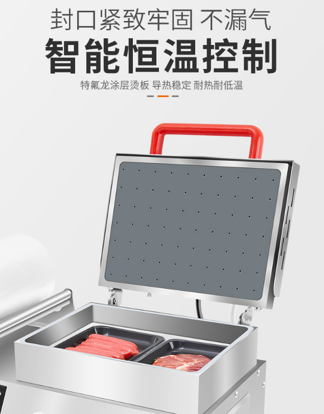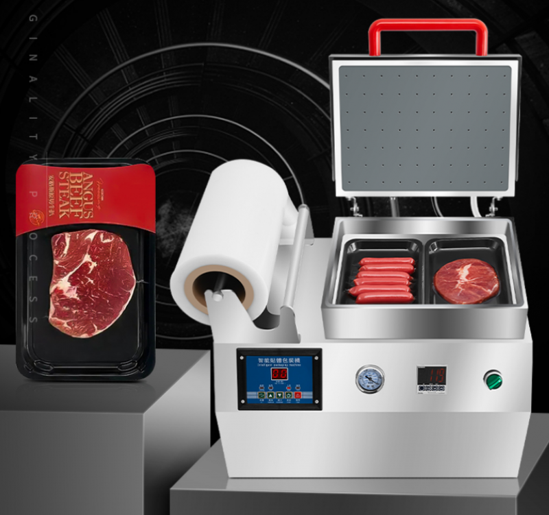 食品盒裝真空包裝機_小型真空貼體包裝是一種新穎的商品包裝技術,在國際食品包裝行業深受青睞,真空貼體包裝主要由襯底托盤和塑料蓋膜組成。貼體包裝的工藝為:將被包產品置于托盤內,使覆蓋產品的特質貼體塑料蓋膜在加熱和抽真空作用下緊貼產品表面,并與襯底托盤封合。真空貼體包裝對不同大小、不同形狀的產品通過特制透明貼體蓋膜即可實現緊貼食品、密封包裝的效果,堪稱完美真空包裝,具有方便、經濟、高效等優點。